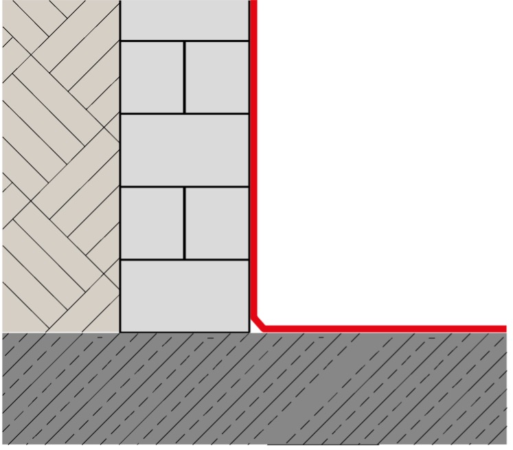 W miejscu styku ściany i posadzki na świeżej warstwie sczepnej wykonać fasetę uszczelniającą z WP DS levell o promieniu R = 5 cm. Zużycie: ok. 1,70 kg/m